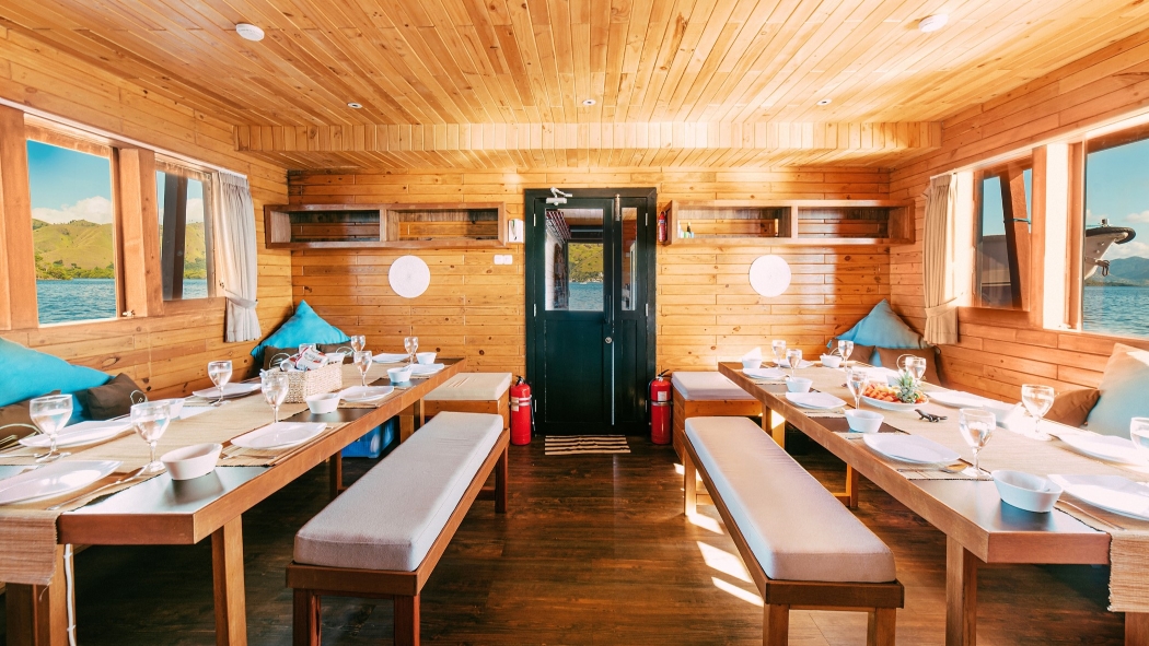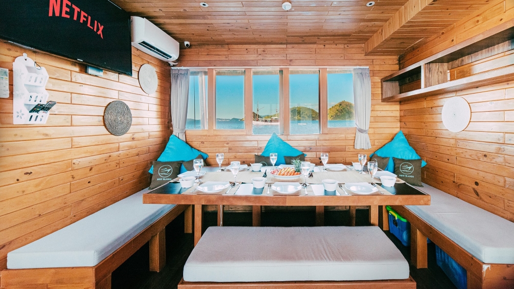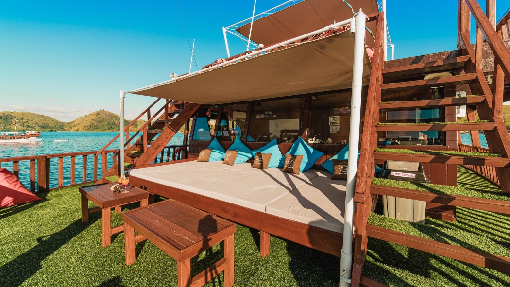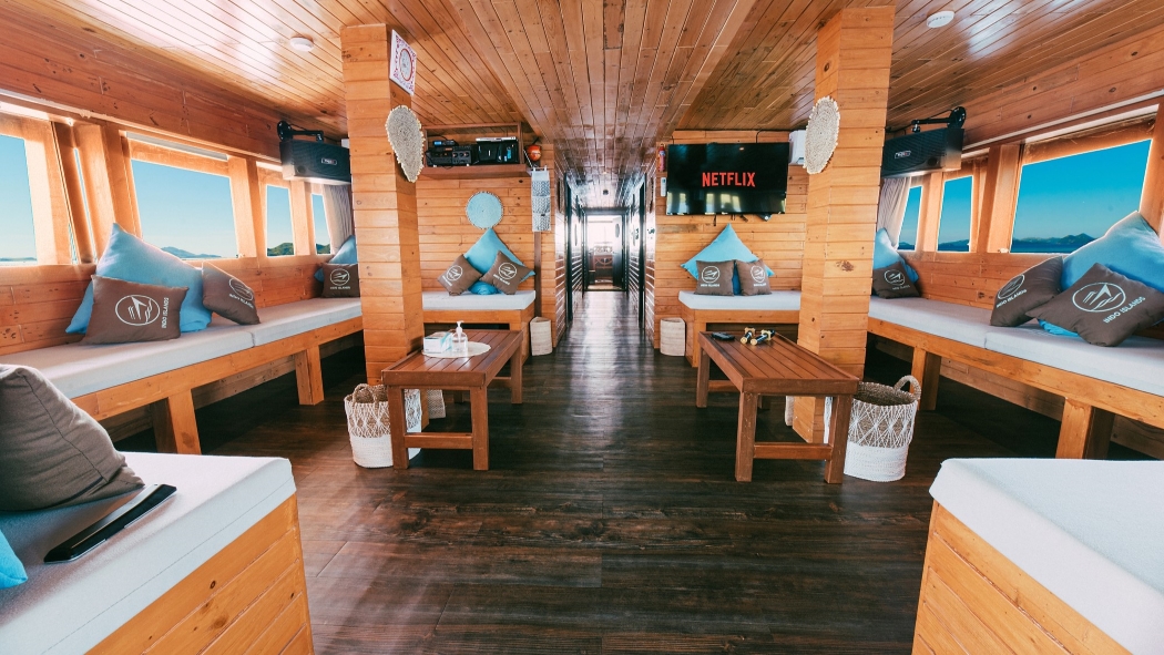 The Deluxe Phinisi boat Ocean Pro has 10 cabins, TV with a Karaoke Set and a sundeck for you to enjoy your time while you live on board. With its large size and experienced crew, we are able to serve the best to provide satisfaction for customers. It also has 10 cabins so it can fit up to 18 people, it is suitable for travel with friends, family or small groups.