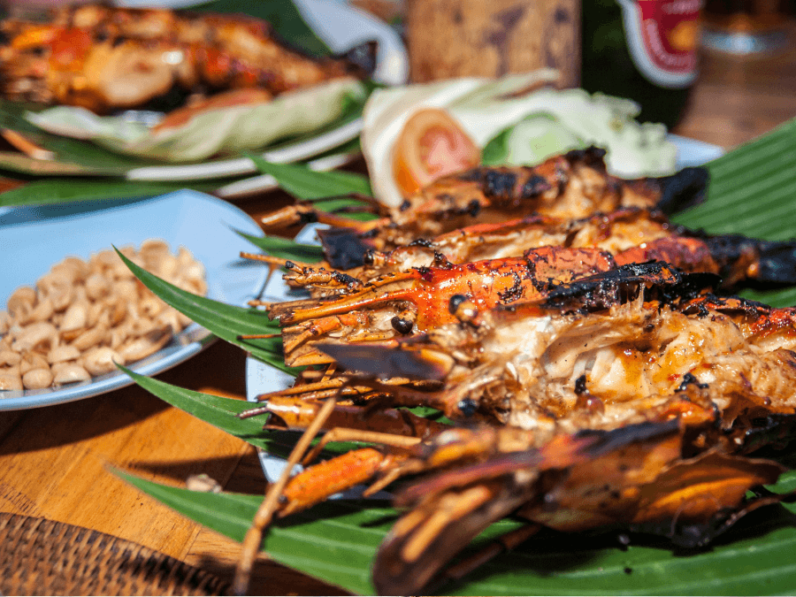 Seafood cafés on the sand: Rows of warungs and restaurants set directly on the beach; diners typically choose fresh fish, prawns, squid, and lobster cooked to order.