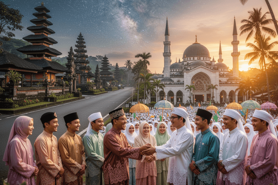 Bali is weliswaar overwegend hindoeïstisch, maar er wonen ook moslimgemeenschappen die Nyepi respectvol in acht nemen. Ondertussen verspreidt de feestelijke geest van Eid al-Fitr zich over de archipel, waardoor de banden tussen de gemeenschappen worden versterkt.