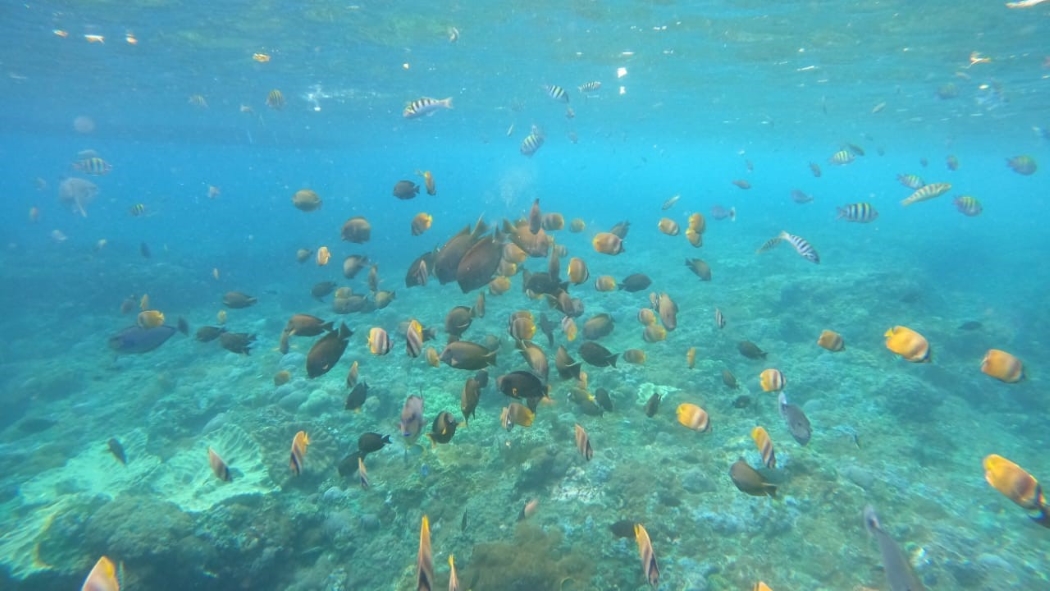 Wall bay point has some very pretty blood red finger corals. The coral is very pretty and there are tons of fish but the current here can be very, very strong. You can find invertebrates hiding in the cracks of the walls, as well as giant Moray Eels and Octopus. Schools of Sweetlips, Red Tooth Trigger Fish and Batfish are to be seen as well as the chance to encounter Reef Sharks, Grouper, Barracuda and Mola Mola. Next, we will continue to GT Point, it is one of the snorkeling spots on Nusa Penida which has absolutely stunning sea views. However, the sea is clear and very clean. So, you can observe the sea and the natural surroundings, you will see the diversity of coral reefs, various types of fish and much more.