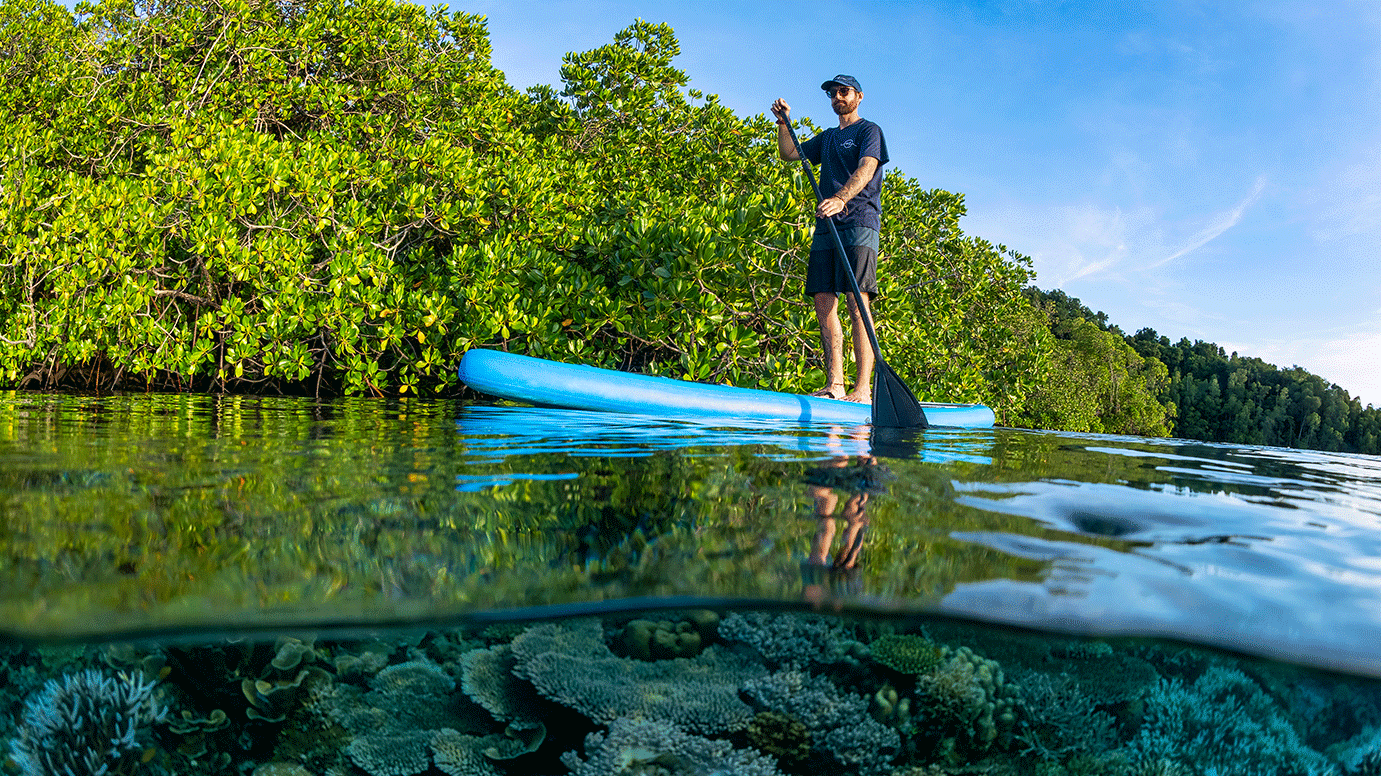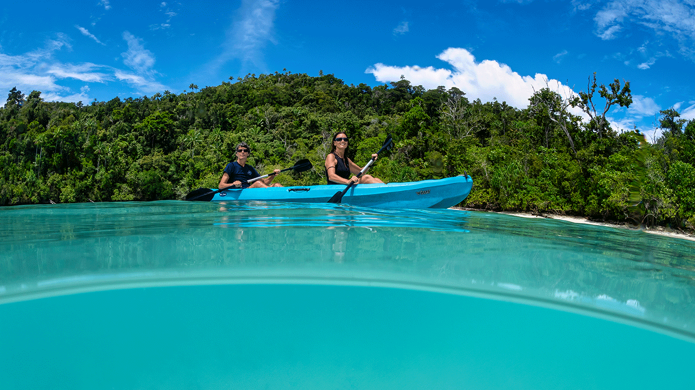 Feel the love around you after climbing to get a bird’s eye view of the famous heart-shaped blue lagoon encircled by the vibrant coral reefs. Or take a speed boat tour or your kayak to get lost in the maze of rocks and channels of Wayil Islands. Here lie some of the most iconic and lush dive sites of Raja Ampat: Wedding Cake, Four Kings or Neptune’s Fantasea. End your day with your flashlight on to explore the dark side of the reef: night dive!